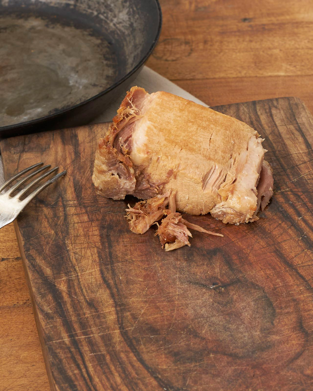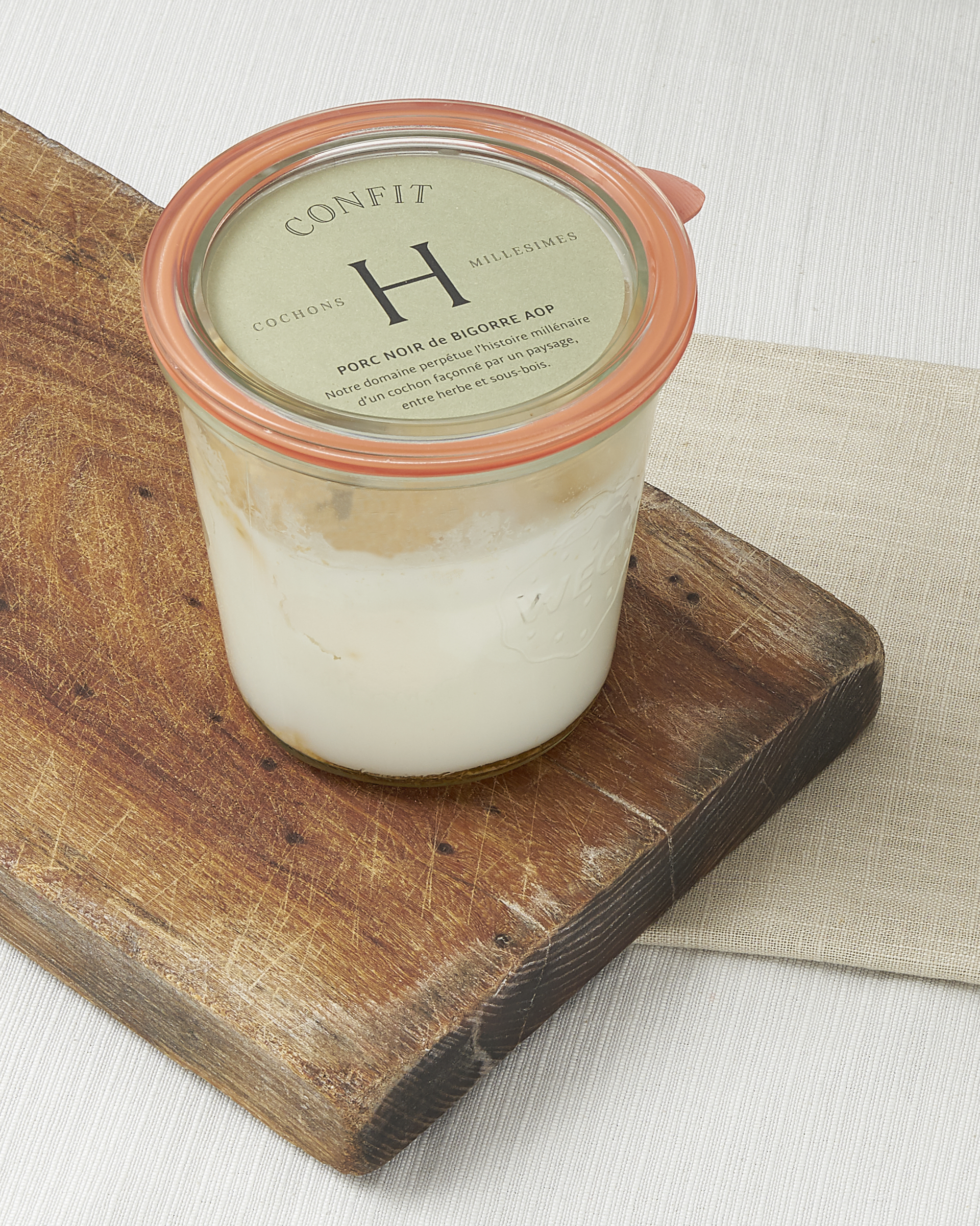 Nos échines et filets sont confits patiemment dans le gras de porc noir de Bigorre pendant une demi-journée.
