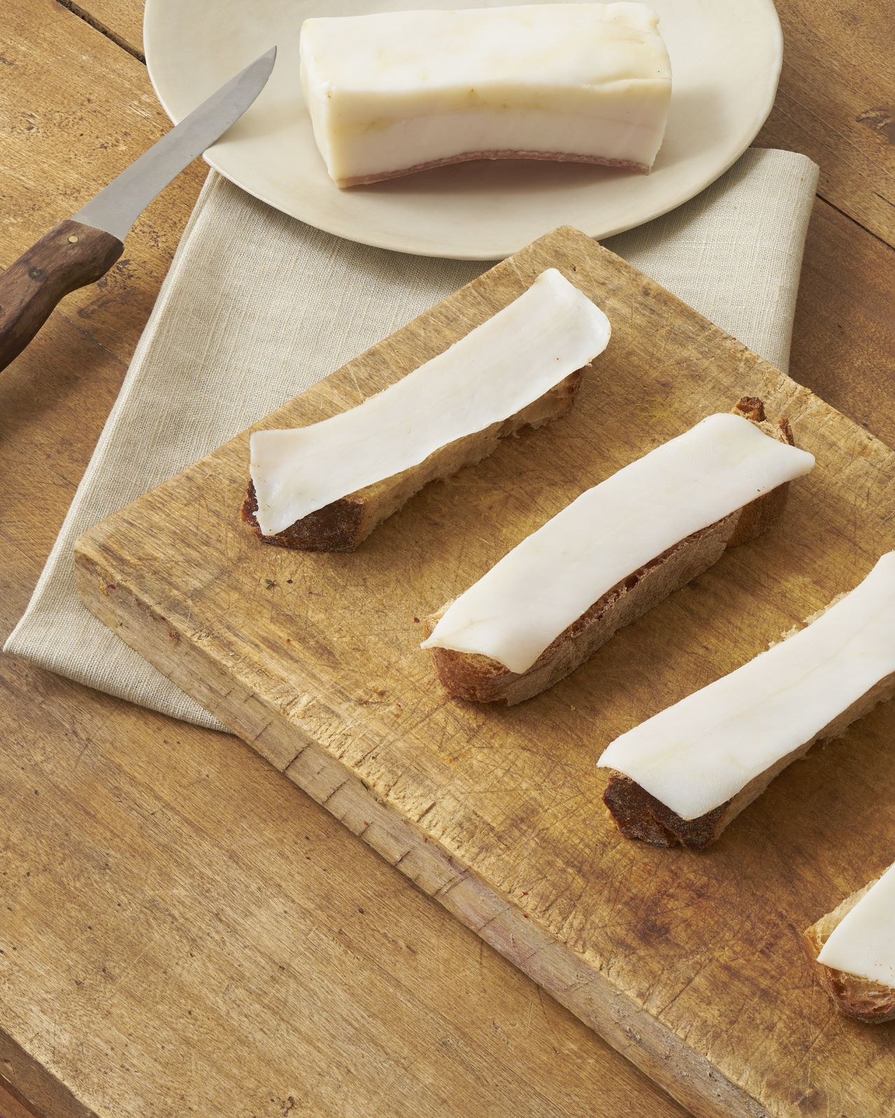 Dégusté froid : Découvrez notre lard à l’apéritif : coupez des tranches très fines et déposez-les sur des tranches de pain grillées. Laissez-les s’imprégner de la température ambiante, un tour de poivre et dégustez !